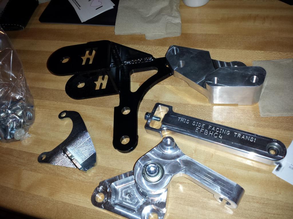 My buddy gets the powder coating done for me at his work for pennies! I have to get it all prepped and heat taped, and it's all professionally handled from there! The secret to running a Hydro tranny in an ef Honda is the hasport conversion kit!