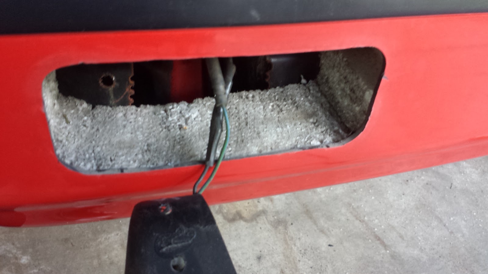 Today I took care of two things that were bugging me: The mystery chrome bar on the back of the car, and the not-quite-right fit of the rear fog lamp.