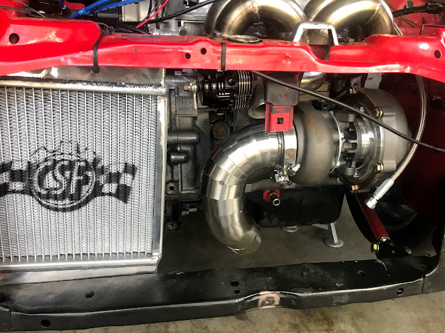 With this in place I have a ton of room for the down pipe so I can start doing a mock up of that and once that's done I can make brackets and bolt down all of the front end pieces. I feel like my entire front end is zip ties right now.