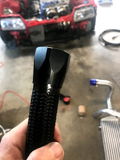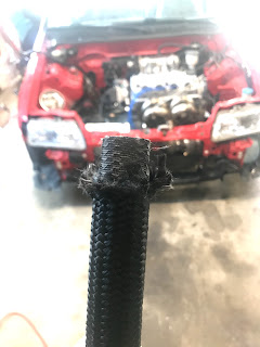 I recently struggled my way through some AN10 fittings for my catch can, and then when it came time to put on my AN16 fittings for the coolant lines I realized that the process wasn't the same. With the larger hose and fittings it was basically impossible to push the hose with the nylon wrap into the fitting so here is what I ended up doing: