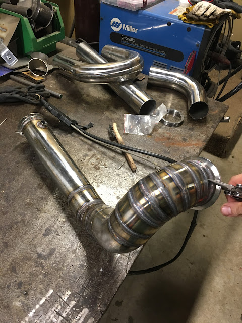 Finally we made some progress on the exhaust. My welder friend did his first pie cut piece and I think it turned out pretty well! Next up is tacking up the rest of the exhaust and then it's on to the Dyno!!