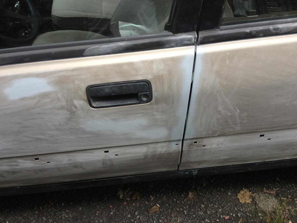 I kinda took the weekend off of the wagon. Had to work overtime and hang with the family. Back at it now though. I got all the dents out of the hood and got it spot primed in. Been hitting some other rough spots/dings here and there.