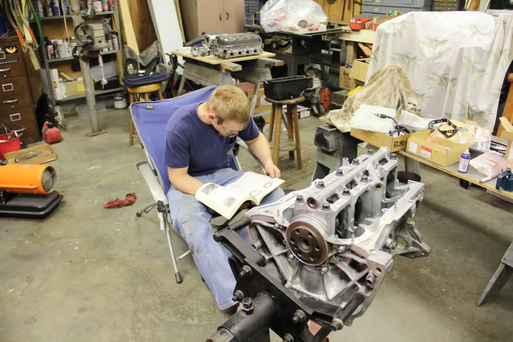Justin reading up on assembling the engine